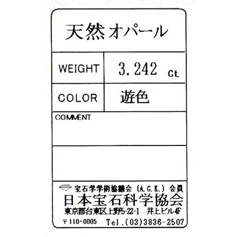 オパール ルース 裸石 3 242ct 12月19日の誕生日石 10月の誕生石 日本宝石科学協会宝石ソーティング付 送料無料